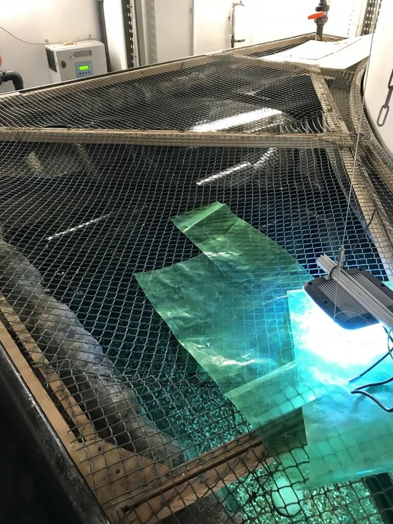 We have to be very careful when we are behind her tank due to her being a dangerous species to work with. Our aquarist team wear rubber gloves and stand on rubber mats whenever we feed her and Bolt actually shares her tank with some tiny fish which clean up all the algae and detritus at the bottom of the tank so that we don’t have to go in and clean as much!