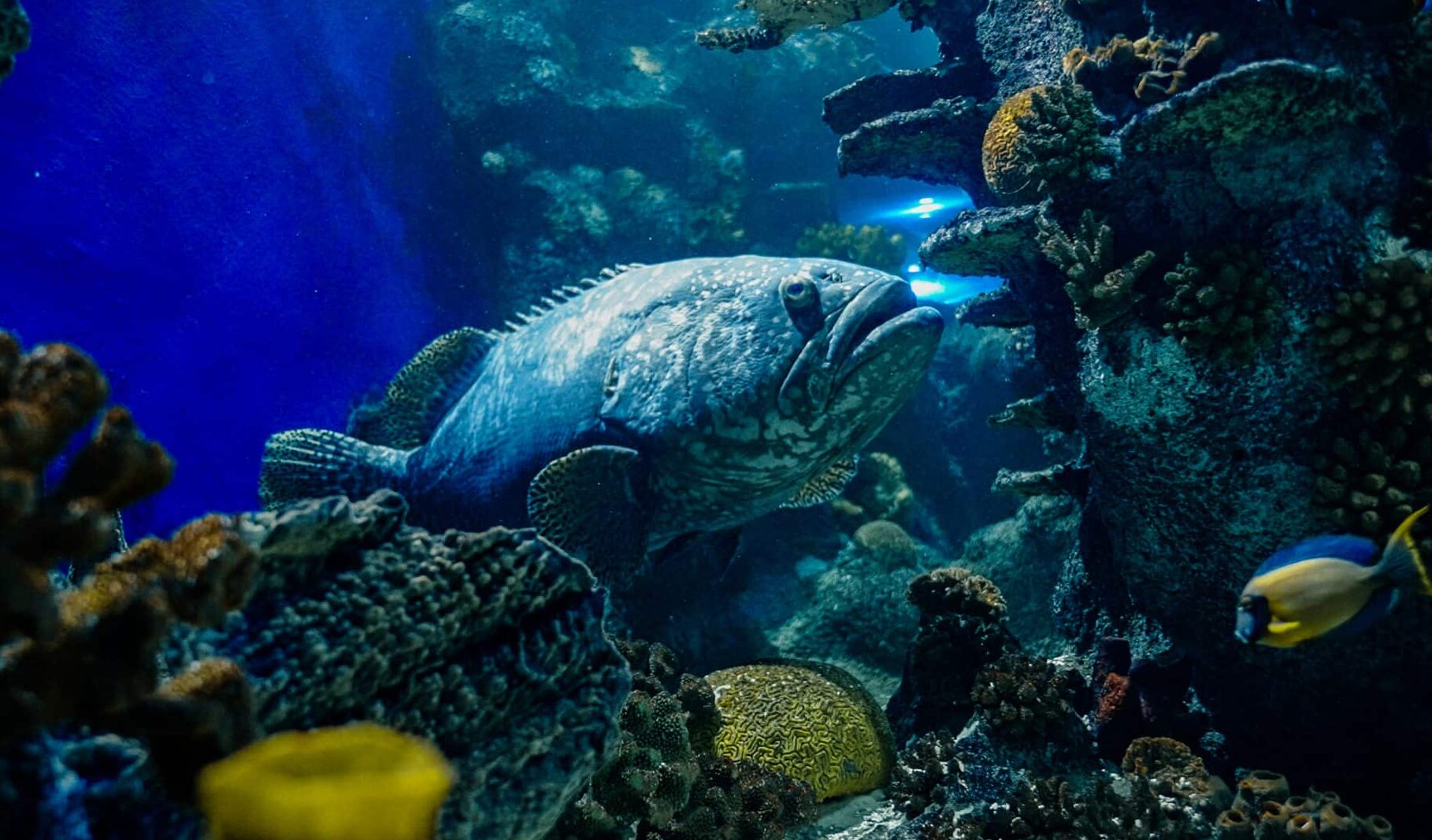 Often found sitting in the spotlight by the huge final window of the aquarium is our giant Queensland grouper, Sheila. Arriving with us in 2019 she has grown from a. An ambush predator, her species enjoys lying in wait on the Coral floor until it’s time to hunt. Here at the aquarium we use something called target training to teach her how to feed. At feeding time a special target is placed in the water that she is taught to recognise. This tells her that her food is ready to grab and keeps her fed and happy every day.
