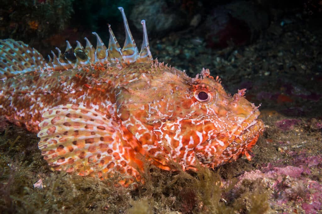 Why? Not only are stonefish armed with some of the deadliest venom in the ocean, but they also rely on camouflage and cover to hunt their prey. That’s why these prehistoric-looking bottom-dwellers are most often found hunkered on the seafloor, with their unique, fossil-like appearance doing all the work while they wait for prey to take the bait.