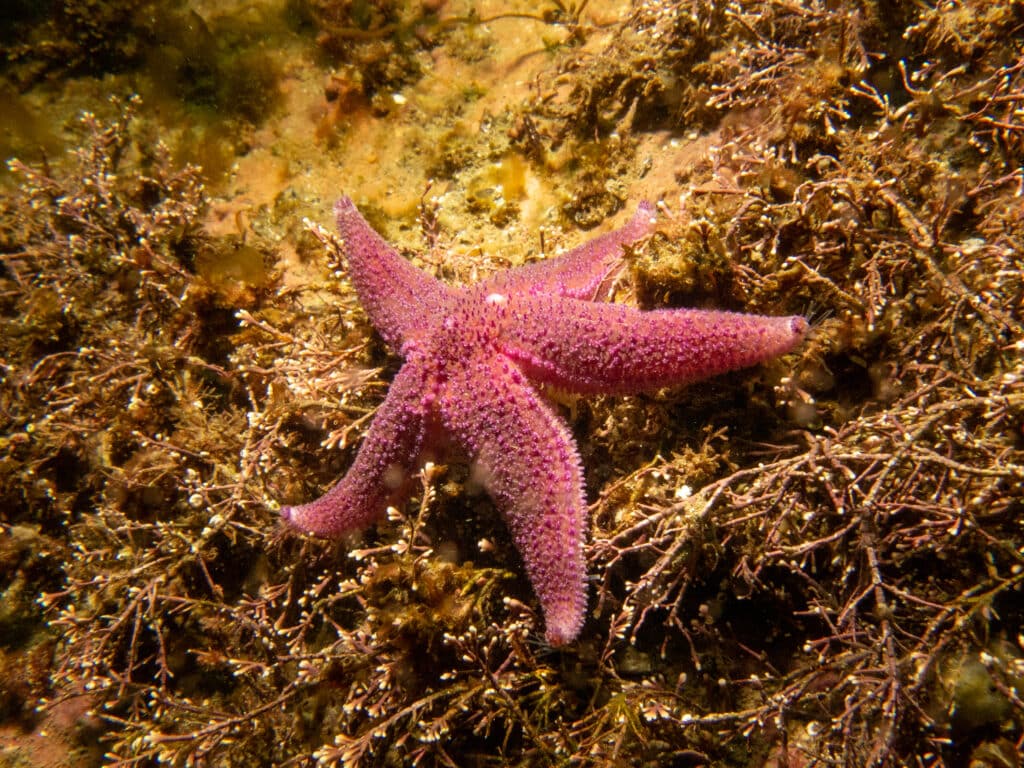 Their appearance can also vary depending on the species, so let’s take a closer look at the common starfish. This species is the one you most often picture when you think of a starfish. They can grow to be around 10 to 30cm in diameter, have five arms and can live for up to 35 years in the wild.