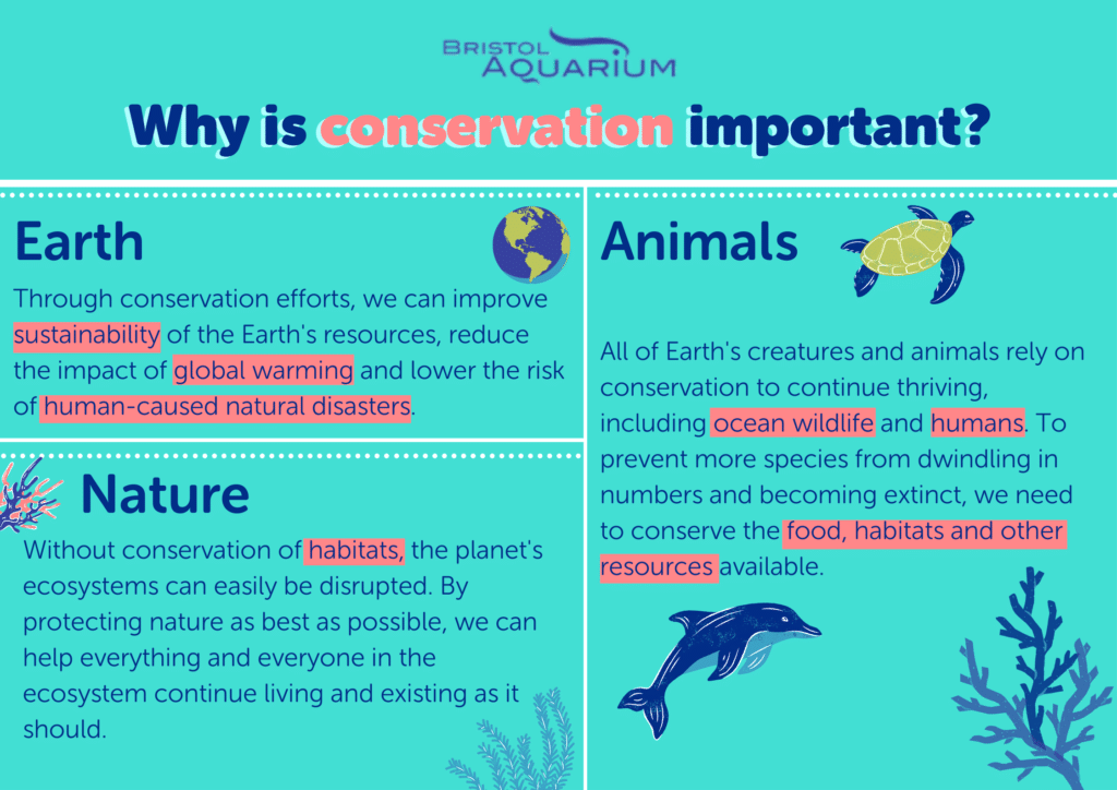 This is one of the areas of conservation we’re well-versed in here at Bristol Aquarium, and something we’re incredibly passionate about. Wildlife numbers are constantly at threat from over-farming, climate change and habitat loss – and, as such, some species come perilously close to coming extinct.