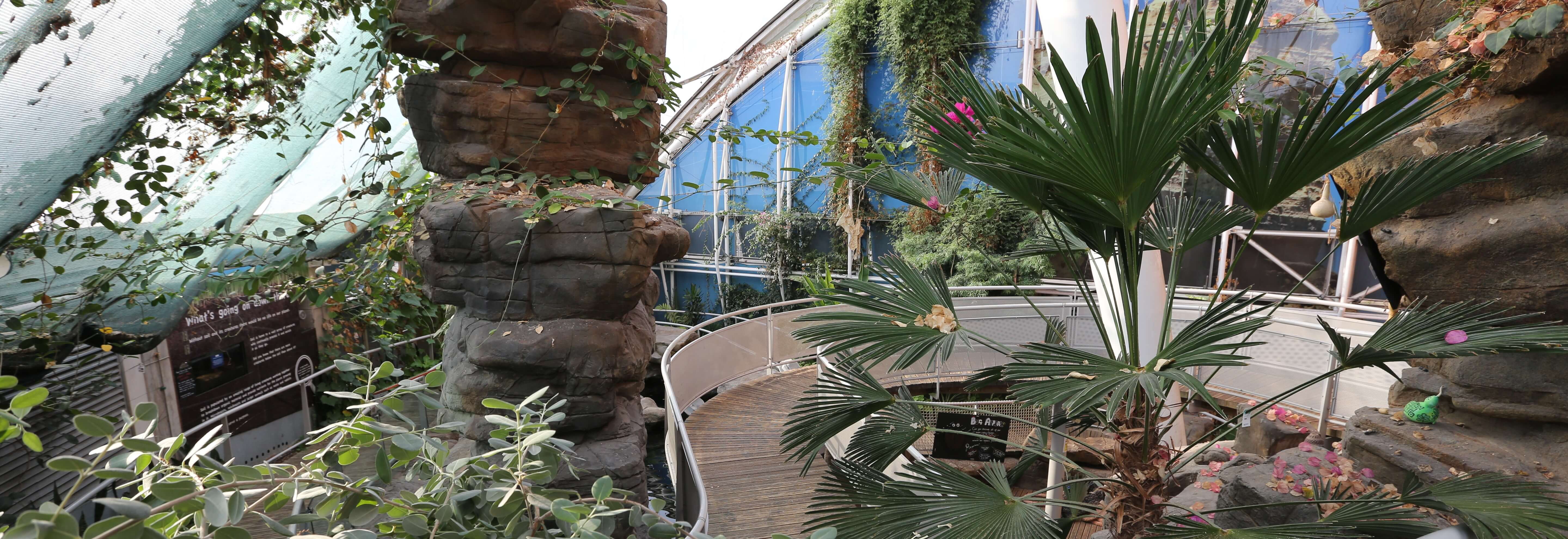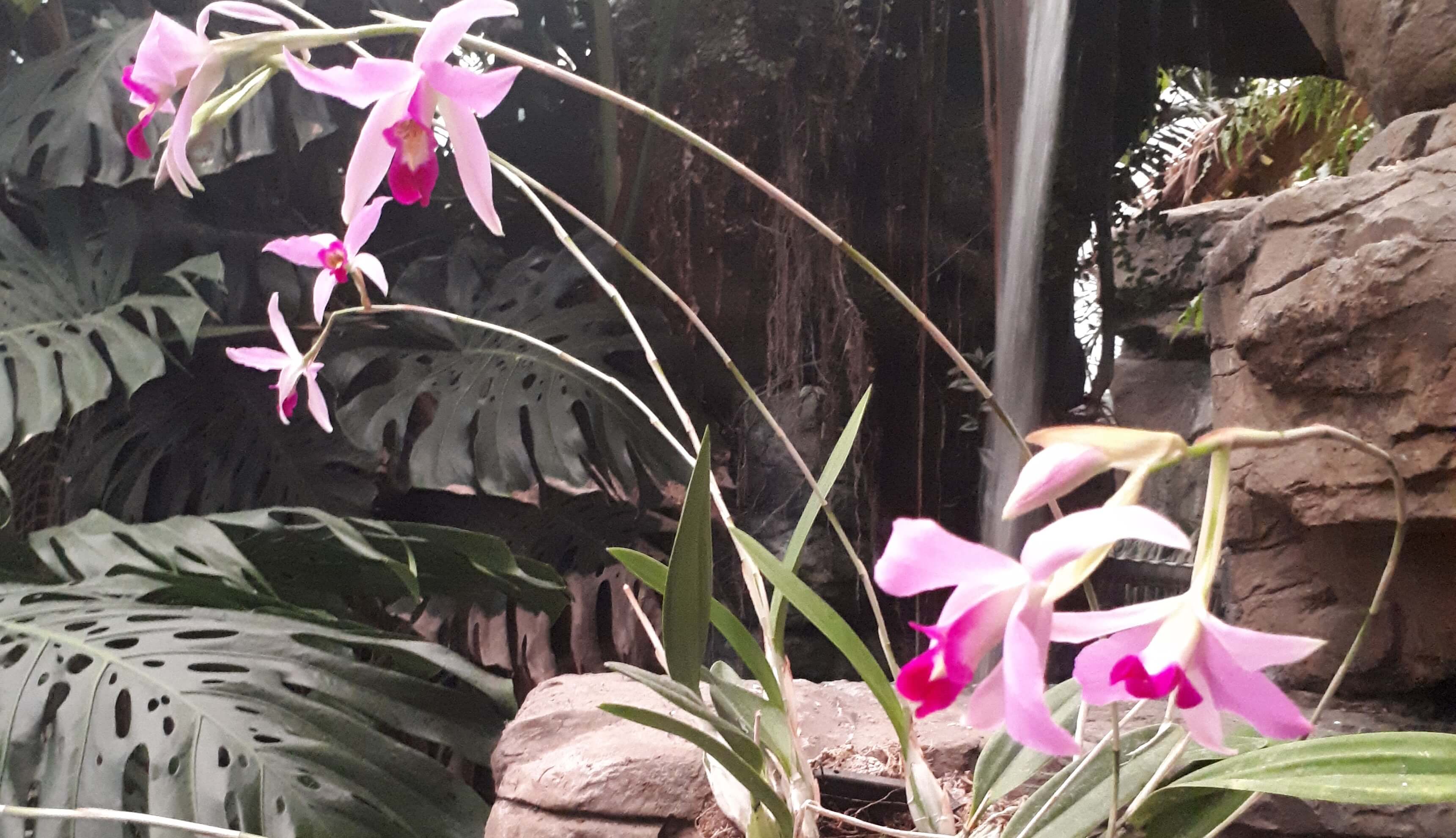 Strolling along our Amazon Rainforest canopy walkway you will spot these unusual orchid collections growing up the walls below you. Right at the very top near our fast-flowing waterfall, our gorgeous Laelia anceps is currently blooming for the first time this year. This Mexican orchid produces brilliant pink flowers on giant flower spikes which can be nearly 1 metre long! It is a type of plant called an epiphyte, which means it grows on the surfaces of other plants or rocks, and it seems to be very at home on the rocks in our botanical house!